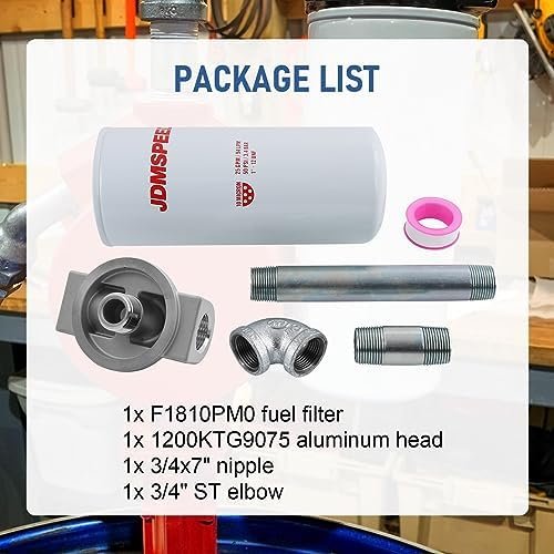 [PACKAGE INCLUDE] 1x F1810PM0 fuel filter, 1x 1200KTG9075 head, 1x 3/4×7″ nipple, 1x 3/4″ ST elbow.