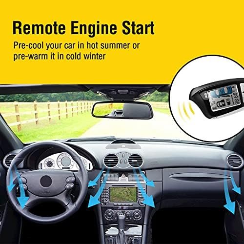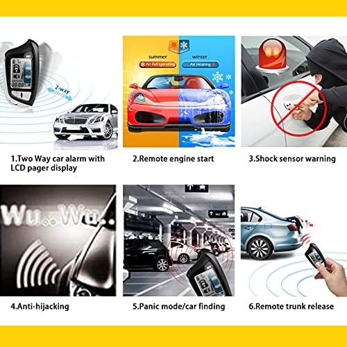 Acteam TWO-way car alarm system with 5-Button LCD display remote, monitor your vehicles 24 hours every day and get real-time feedback. 1.73″ Big size LCD remote controller, LCD color changed against different alert.