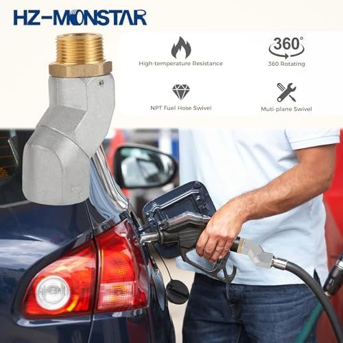 [360° Rotating Connector] The fuel swivel has a 360° rotation function to prevent twisting, binding, and kinking of fuel hoses when refueling. Ensure that the fuel nozzle does not move and is not easy to leak. The fuel hose rotates to move more easily and freely. This fuel swivel 360 rotating connector has a male and female 3/4 inch.