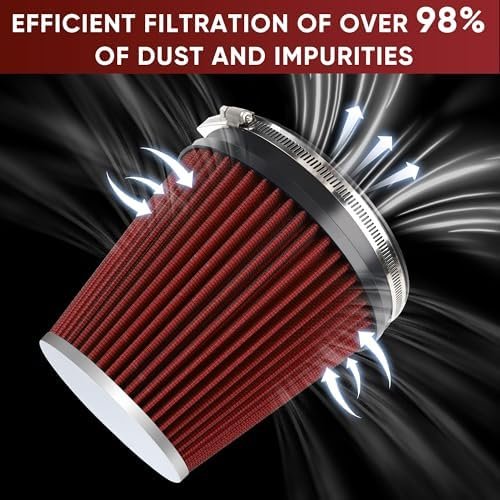 [Engineered Power] Cold air intake filter high quality filtration media provides more airflow to increase power and acceleration, ensuring optimal performance on the road. Note, clogged or dirty air filters can reduce your vehicle’s acceleration by up to 10%