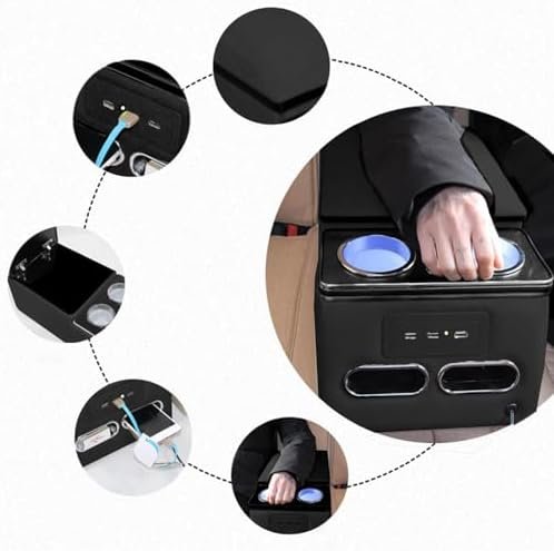 【Universal Design】 2 Cup Holders + 1 Phone Holder + 2 USB Sockets. It’s not a simply center console, but a mini charging station for your phone, 2 USB sockets can perfectly solve your phone runs out of battery problem.