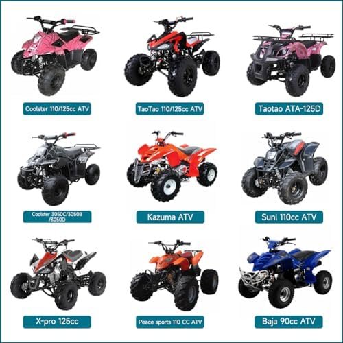Compatibility: Taotao 50cc-125cc ATV (ATA-125D/Boulder B1/T-Force/Cheetah/,ATA-110B,ATA-110D,ATA-110F,ATA-110H, ATA-110L,ATA-125A,ATA-125F1,ATA-125G,ATA1-125H), Coolster 110cc/125cc(3050B, 3050C,3050D, 3125B, 3125C, 3125R, 3125X8,3125XR8 and 3125XR8-S), Venom 125cc, X-pro 125cc, Icebear 125cc, Baja 90, Coleman 125cc,Panther 110cc, Buyang, Coolsport, Kazuma(Falcon 90), Redcat, Loncin 50cc,Vitacci 125cc,AIM-EXrts