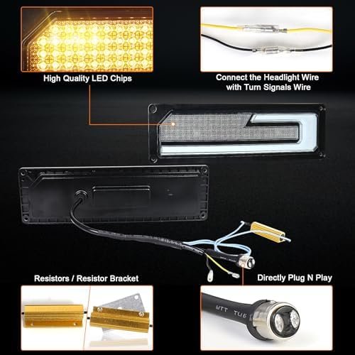 Directly Plug N Play:These led headlights and turn signal lights which perfectly replace factory lights,easy installation directly plug and play. The led headlights axis can be adjusted,could adjust the headlights’ light beam up/down. The turn signal light come with the resistors and resistor brackets for install, you don’t need to worried about the hyper flash problem.Turn Signal Lights could be multiple different orientations for option.