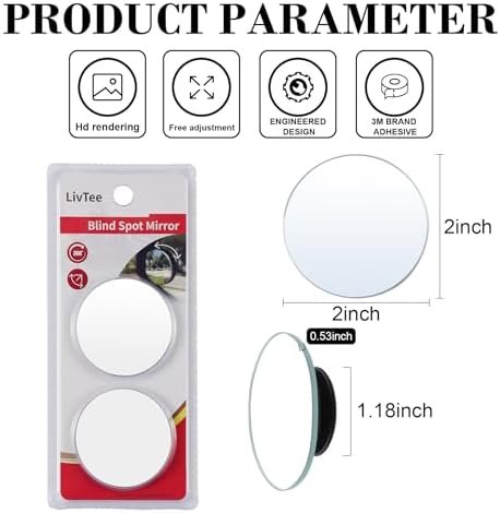 LivTee Blind Spot Mirror, 2″ Round HD Glass Frameless Convex Rear View Mirrors