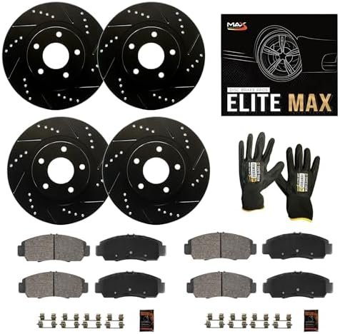 Hassle-Free Installation: This comprehensive brake kit includes 2 slotted and drilled front rotors, 2 rear rotors, 2 sets of advanced carbon ceramic brake pads, stainless-steel hardware, high-temperature lubricant, and gloves for straightforward installation.