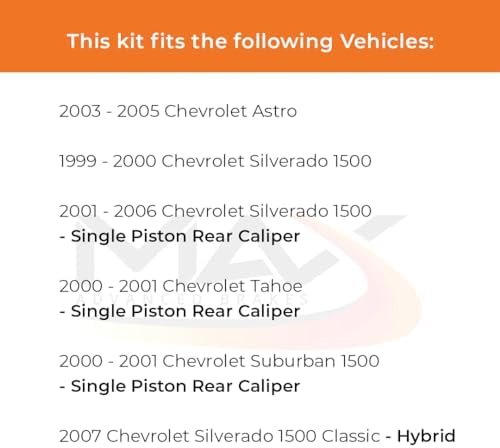 Precise Vehicle Compatibility: This brake pad and rotor kit is compatible with 1999-2006 Chevy Silverado 1500, 2000-2001 Suburban 1500, compatible with 1999-2006 GMC Sierra 1500, 2000-2001 Yukon XL 1500, 2000-2001 Tahoe, 2003-2005 Astro Single Piston Rear Caliper