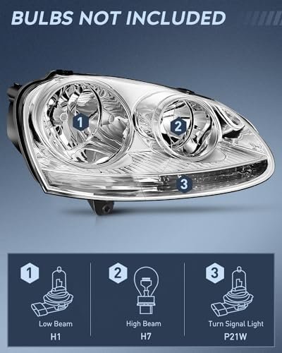 Compatibility: The headlights assemblies are compatible with 2005 2006 2007 2008 2009 2010 Volkswagen Jetta, 2006-2009 VW Rabbit, 2006-2009 VW GTI and 2008-2009 VW Jetta Wagon; Compatible with factory Halogen Headlight Models Only. Not Compatible with factory HID/Xenon Headlight Models. High beam bulb type: H7;Low beam bulb type: H1. Bulbs are not included, use stock bulbs for Installation.