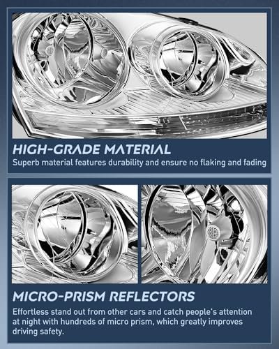 DOT Compliance and safe Driving: To ensure driving safety for you and the oncoming driving circumstance, our 2005-2010 VW Jetta, 2008-2009 VW Jetta Wagon, 2006-2009 VW Rabbit and GTI headlights are DOT & SAE compliant. Our headlights provides clearer and further vision to see the wild animals, falling rocks or other obstacles at night. Reduce the possibility of danger.