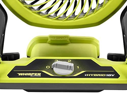 Expand your RYOBI 18V ONE+ System with the RYOBI 18V ONE+ Hybrid WHISPER SERIES 7-1/2 in. Fan. Now part of our WHISPER SERIES, this fan is 44% quieter with 24% greater air velocity to keep you cool no matter the application. Equipped with 3 speed settings and a 160° pivoting head, the airflow can be customized to direct the air where it’s needed. Our new compact design features an integrated handle and multiple hanging options for maximum portability, use, and storage. Best of all, it is part of the RYOBI ONE+ System of over 260 cordless tools that all work on the same battery platform. This 18V ONE+ Hybrid WHISPER SERIES 7-1/2 in. Fan is backed by the RYOBI 3-Year Manufacturer’s Warranty and includes (1) PCL811 18V ONE+ Hybrid WHISPER SERIES 7-1/2 in. Fan, and (1) Operator’s Manual. Battery and charger sold separately.