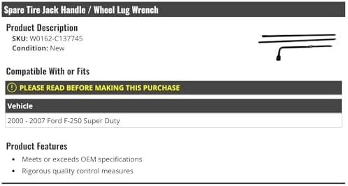 Spare Tire Jack Handle / Wheel Lug Wrench – Compatible with 2000 – 2007 Ford F-250 Super DutyFeatures:Meets or exceeds OEM specificationsRigorous quality control measuresCompatible With or Fits:2000 – 2007 Ford F-250 Super Duty