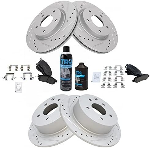 Kit Includes: (1) Front Ceramic Brake Pad Set with Contact Point Grease & Hardware; (1) Rear Ceramic Brake Pad Set with Contact Point Grease & Hardware; (1) 13 oz Non-Chlorinated 50 State Formula Brake Cleaner; (1) 12 oz DOT 3 & 4 Brake Fluid; (2) Rear Performance Brake Rotors; (2) Front Performance Brake Rotors