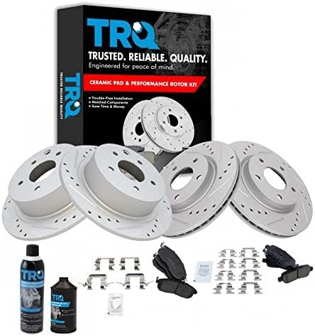 TRQ brake kits are designed to restore your brake system to like-new performance. TRQ brake pads are positive molded, thermal scorched, chamfered, and utilize a multi-layer shim for enhanced performance and service life. TRQ G-coated rotors have long-lasting rust prevention, perfect for wheels with large openings that expose the rotor and rotor hat during daily drives. All products are fit and road-tested in our Massachusetts R&D facility to ensure we deliver on our promise of Trusted Reliable Quality.