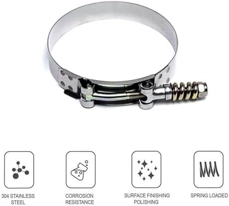High-torque spring-loaded T-bar clamps. Good Material, 5-layer silicone and won’t crack or split like factory rubber boots.